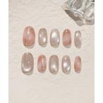 ネイルチップ ネイルシール 水光ネイルピンクマグネットオーロラグラデーションラメゴールドミラーラインオーバルネイルチップ