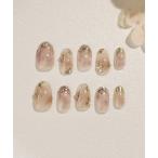 ネイルチップ ネイルシール 水光ネイルベージュニュアンスフラワーゴールドミラーストーンホログラムオーバルネイルチップ