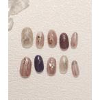 ネイルチップ ネイルシール 水光ネイルパープルニュアンスゴールドミラーパールオーバルネイルチップ