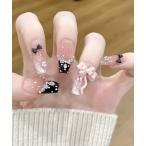 ネイルチップ ネイルシール 3D水光ネイルベージュマグネットブラックフレンチリボンハートストーンバレリーナネイルチップ