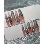 ネイルチップ ネイルシール 卒業式 3D水光ネイルストーンシルバーブルーマグネットバレリーナネイルチップ