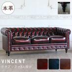 Vincent(ヴィンセント)シリーズ 3人掛け チェスターフィールド クラブソファ ボタン留めシート [総革張り] VCB3L リプロ E 178*74*68