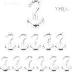 マグネットフック ネオジム磁石 超強力フック 垂直耐荷重22kg 金属製 直径 1.6cm 2.0cm 2.5cm 磁石付き キッチン用 壁掛け 収納 フック シルバー (10個入)