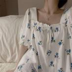 ネグリジェ ワンピース ロング丈 姫 春夏 夏 半袖 ロング丈 ミモレ丈 綿 ナイトウエア ナイトドレス ルームウエア パジャマ 部屋着 セクシー 北欧風 可愛い 姫系 ゆったり 上品 高級 オールシーズン 洗える 肌触りよい おしゃれ 綺麗