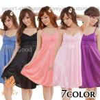 スリップ ネグリジェ レディース 女性用 ワンピース ランジェリー ルームウェア Vネック キャミワンピ ミニ丈 ひざ上丈 膝上丈 ノースリーブ サテ