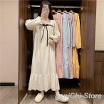 パジャマ ネグリジェ ルームウェア レディース 春 秋 冬 寝巻き ルームワンピース 姫系 ロング丈ネグリジェ ワンピース 長袖 無地 ナイトウェア 部屋着 可愛い