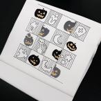 特選 塩瀬九寸なごや帯 ハロウィン 白 ホワイト 清流庵 正絹 京友禅 手描 長尺 カボチャ ネコ 星 オバケ コウモリ 日本製