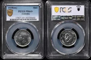 オーストラリア 1938 KGVI メルボルン プルーフ 1/- FDC。スラブ PCGS PR64+。レン猫 $32,500