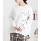 tシャツ 裾ドロストプルオーバー ぶらぶらネコモチーフ 長袖 レディース