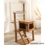 キャットタワー 猫タワー 木製 据え置き 大型猫 スリム 省スペース 爪とぎ 宇宙船付き 木登りタワー 多頭飼い 運動不足解消 登り降りしやすい ネコ タワー