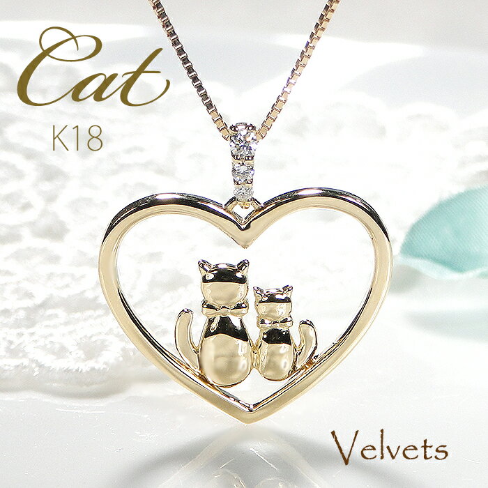 K18YG ハート&キャット ダイヤモンド ペンダント【送料無料】品質保証書 ラッピング無料 ダイヤモンドネックレス ダイヤネックレス ダイヤペンダント ハート ペンダント ネコ ねこ 猫 cat ジュエリー 18金 ゴールド 人気 可愛い アニマル プレゼント オシャレ