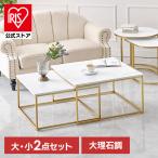 テーブル ソファテーブル ネストテーブル 角型 机 2点セット 大理石調 ゴールド脚 リビング コンパクト 白 ホワイト かわいい おしゃれ リコリコ