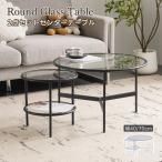 10%OFF期間限定★レビュー特典・ネストテーブル センターテーブル ガラス 丸 ローテーブル リビング おしゃれ コンパクト 来客用 天然木 サイドテーブル