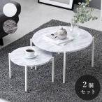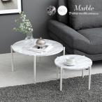 ネストテーブル 大理石調 円形 2個セット テーブル ローテーブル サイドテーブル コンパクト マーブル調 コーヒーテーブル リビングテーブル 代引不可