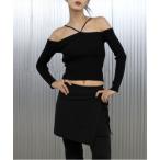 tシャツ ホルターネックストラップスリムクロップド長袖Tシャツ レディース