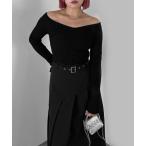 ニット セーター 「jiasecond.」バックリボンリブトップス / ニット リブニット タイト Vネック 長袖 バックストラップ ブラック ブルー