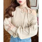 tシャツ ストラップチョーカーネックリボンアシメワンショルダーニットソープルオーバー レディース