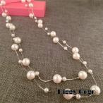 ネックレス レディース コットンパール ロング 2連 レディース 結婚式 パーティー 入学式 卒業式