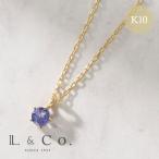 ネックレス K10 ジルコン ブルー カラーストーン 10金 イエローゴールド シンプル 一粒 ペンダント プレゼント L&Co. エルアンドコー