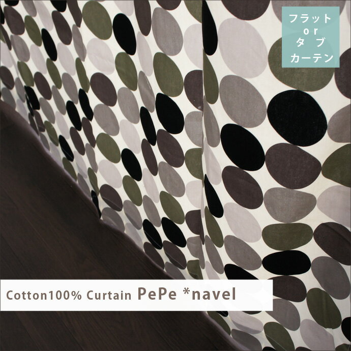 [スーパーセール10%OFF!]北欧カーテン 綿100% 綿プリントカーテン-pepe- /●ネーブル/【CH309】タブ/フラット仕様 幅140×丈178/200cm[1枚][コットン 天然素材 洗える カーテン 節電 国内縫製 ] OKC4