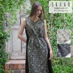 ワンピース レディース 【イクコ IKUKO】 ジャガード花柄 ワンピース 日本製 素材 ポリエステル100% ウエスト切り替え ツートンカラー 洗濯可能 手洗い