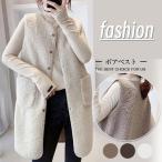 厚手ボアベスト レディース ジャケット アウター チョッキ ロング フリースベスト ジレ 前開き もこもこ ゆったり 着痩せ 暖かい 防寒 防風 通学 通勤