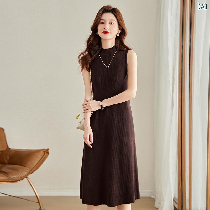 ワンピース レディース 上品 通勤 オフィス カジュアル デート おしゃれ 秋冬 ウール ニット ドレス コート ノースリーブインナー セーター スカート レングス