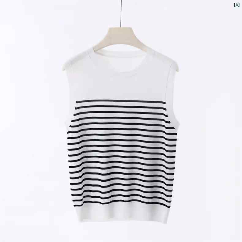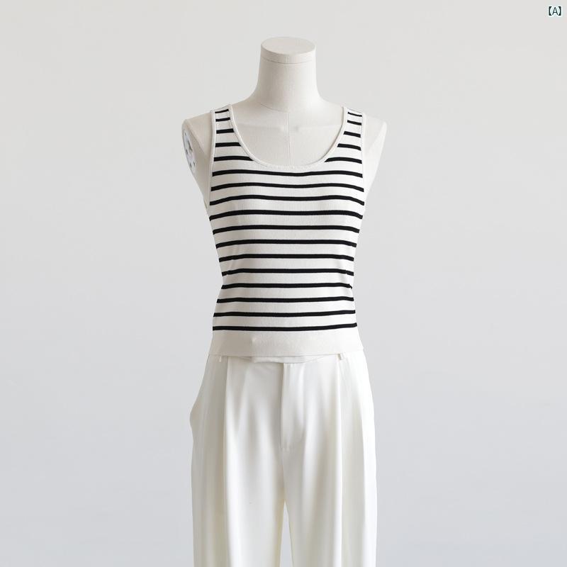 レディース ファッション レディース オシャレ コーデ 春 秋 夏 ストライプ ラウンドネック ニット 冷感 ベスト レディース 春夏 ノースリーブインナー ボトム サスペンダー トップ アウターウェア