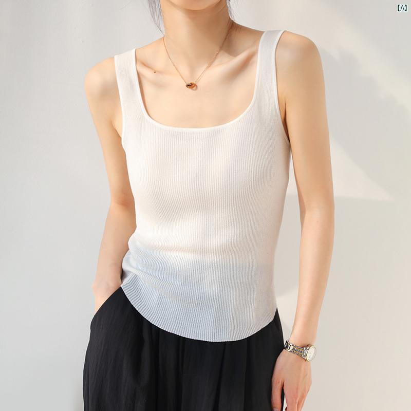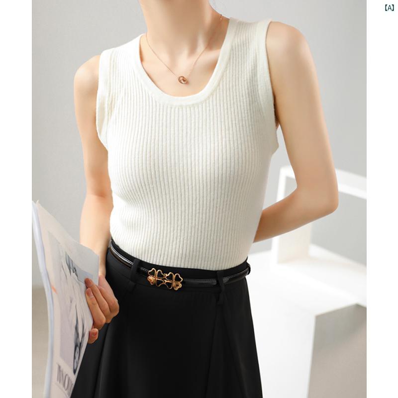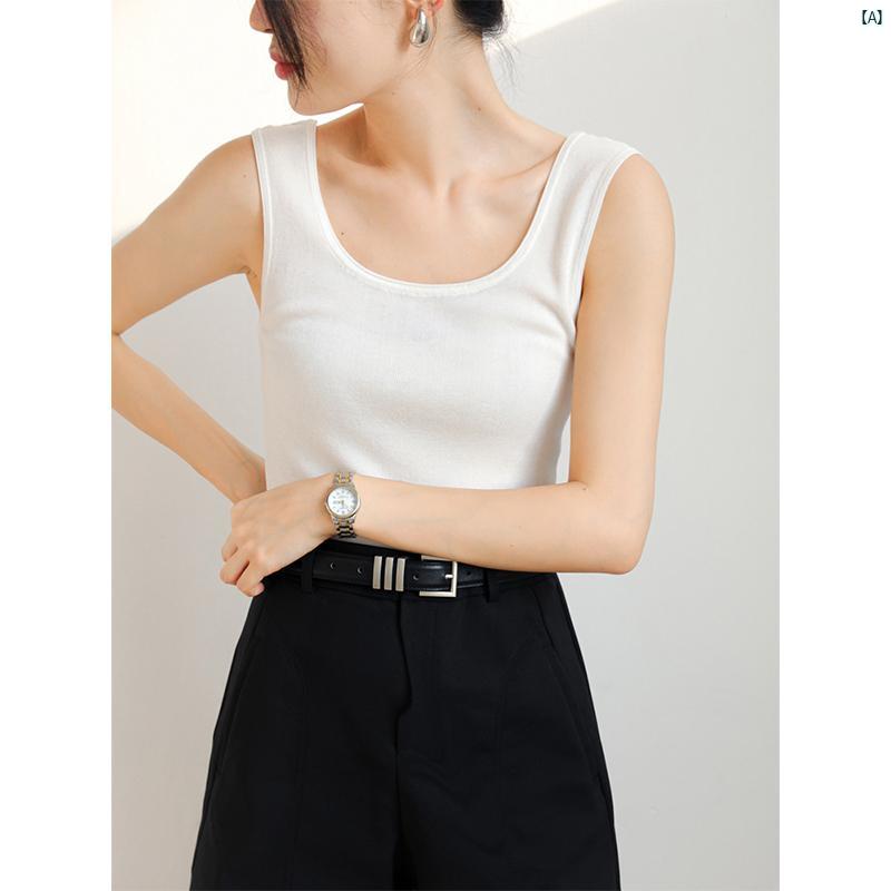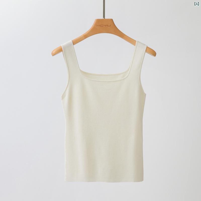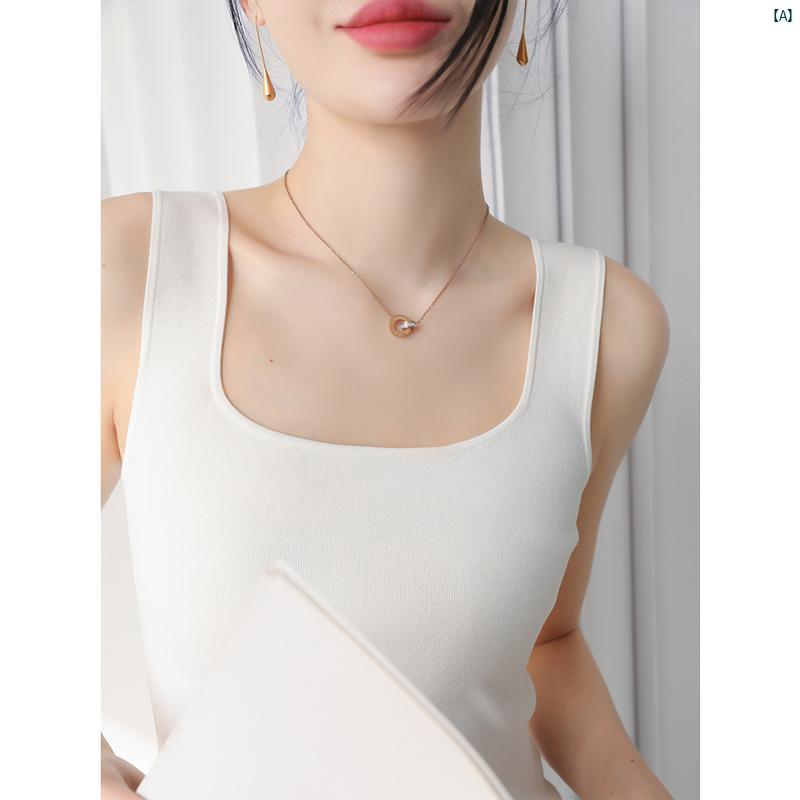 レディース ファッション レディース オシャレ コーデ 春 秋 夏 スレッド U ネック レディース ワイド ショルダー ウール キャミソール 秋冬 スリムフィット ノースリーブインナー トップ ホワイト