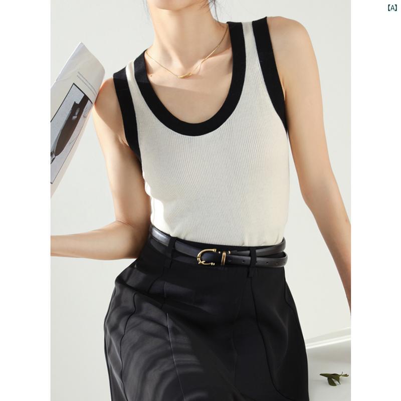 レディース ファッション レディース オシャレ コーデ 春 秋 夏 秋冬 レディース ブラック ホワイト コントラスト ウール ニット ベスト スリムフィット ノースリーブインナー トップ アウターウェア 小柄 サスペンダー