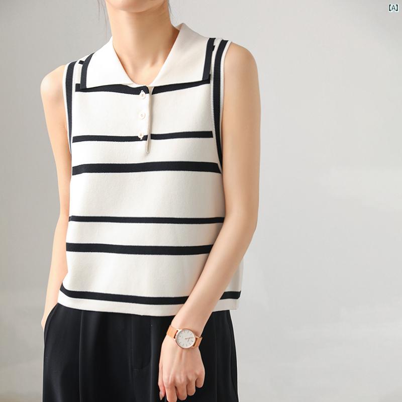 レディース ファッション レディース オシャレ コーデ 春 秋 夏 ブラック ホワイトストライプ ポロ 襟 ワイド ショルダー キャミソール レディース 春夏 ノースリーブインナー プルオーバー 美 背中 ボトムス トップス