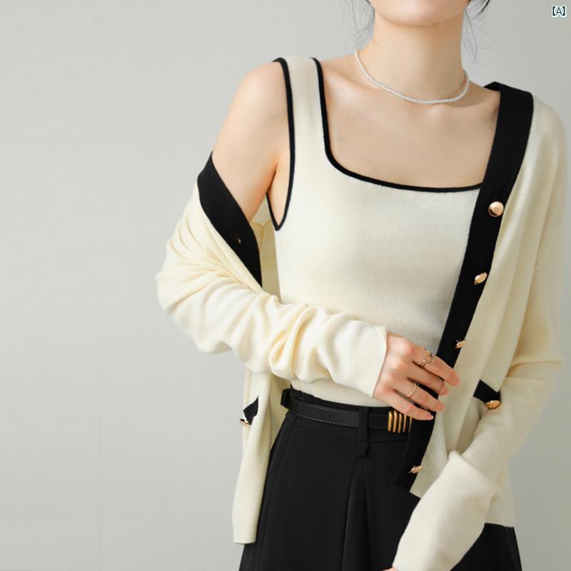 レディース ファッション レディース オシャレ コーデ 春 秋 夏 高級感 フレンチスクエア ネック ウール アウター ニットキャミソール レディース 秋冬 スリム ノースリーブインナー ボトムス トップス