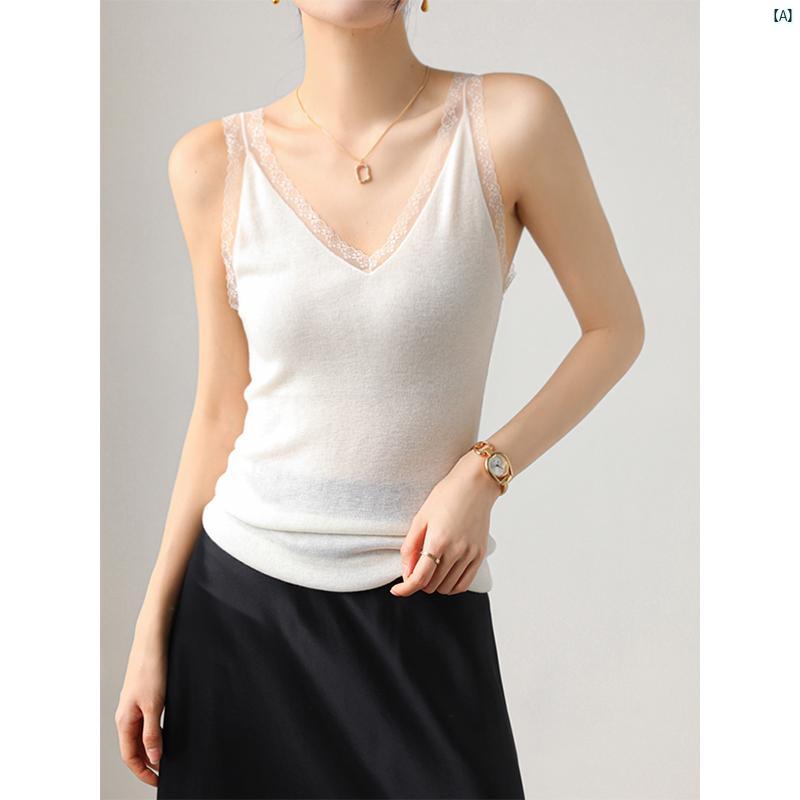 レディース ファッション レディース オシャレ コーデ 春 秋 夏 ホワイト Vネック 魅惑的 スリム キャミソール レディース 夏 薄手 ノースリーブインナー プルオーバー トップ