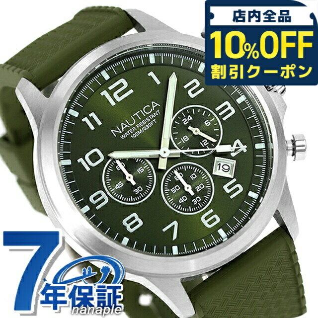\10%OFF+さらに6倍★1日当店限定/ ノーティカ エヌシーティー ブルーオーシャン クオーツ 腕時計 メンズ クロノグラフ NAUTICA NAPBOS402 アナログ グリーン ブランド おしゃれ 防水 プレゼント 男性 実用的