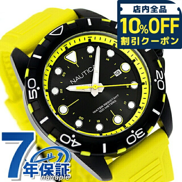 \全品10%OFF★2日10時迄/ ノーティカ エヌエスアール クオーツ 腕時計 ブランド メンズ NAUTICA NAPNRS403 アナログ ブラック イエロー 黒