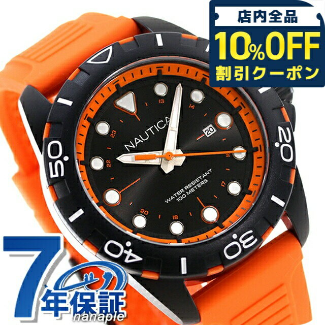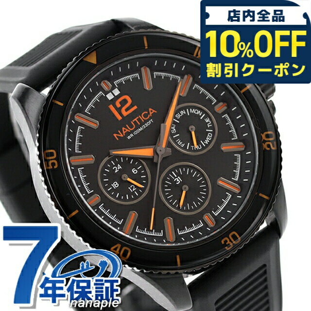 \全品10%OFF★2日10時迄/ ノーティカ エヌエスアール クオーツ 腕時計 ブランド メンズ NAUTICA NAPNRS405 アナログ ブラック オレンジ 黒