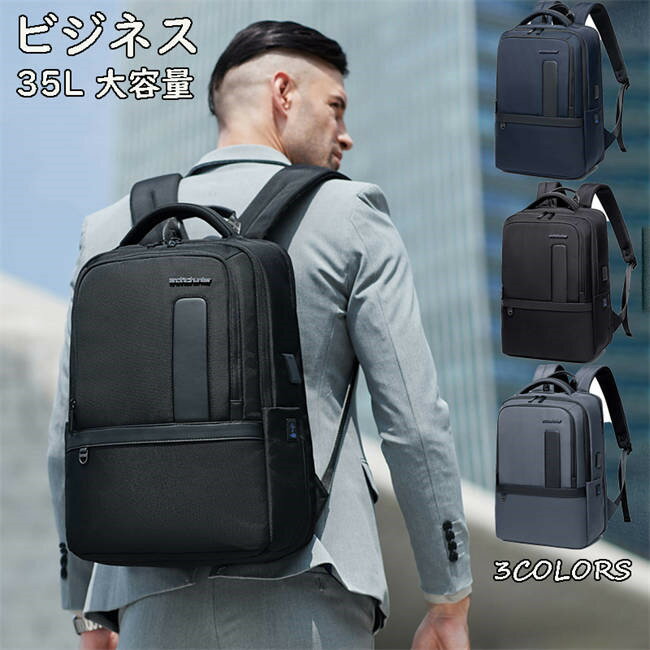 【店内全品!20%OFF発行中】ビジネス リュック メンズ 35L 大容量 防水 ビジネスバッグ バックパック A4 サイズ 軽量 ノートPC 通勤 通学 出張 就活 リュックサック ブラック PC ビジネスバック ビジネスリュック bag 2泊 3泊 荷物 大学 受験 学校 ギフト 父の日 誕生日