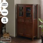アジアン家具 ハイキャビネット 幅75cm 奥行き38cm 高さ130cm ガラス扉 引き出し リビングボード ダイニングボード 収納 本棚 食器棚 コレクションボード コロニアルシリーズ 木製 天然木 マホガニー おしゃれ 完成品 送料無料 ※一部地域除く