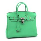 エルメス バーキン25 W刻印 2024年製 トゴ ヴェールコミック シルバー金具 ハンドバッグ 手提げ鞄 内縫い 25cm グリーン 緑 中古 送料無料