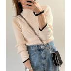 ニット セーター モチモチリブ袖配色ハイネック「WEB限定カラーあり」 レディース