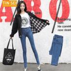 デニムパンツ レディース ストレッチ デニム スキニー ジーパン ジーンズ 切りっぱなし ダメージ リベット レディース 美脚 脚長 メ込
