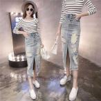 タイトスカート デニム タイトスカット レディース タイトスカート 膝丈 ダメージデニムスカート ハイウエスト スリム 薄手 綿