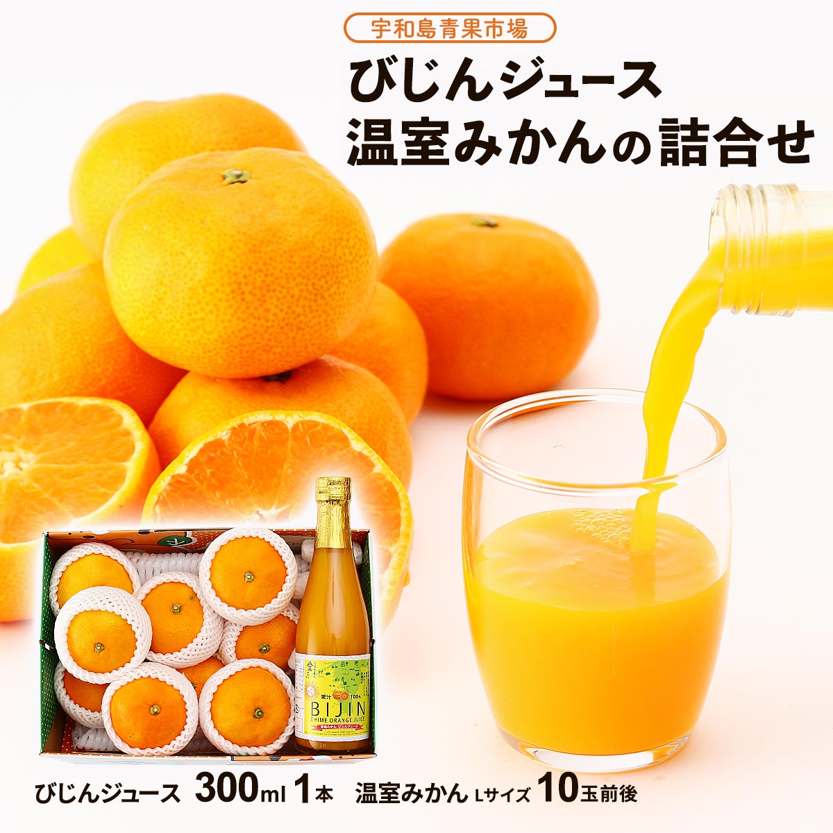 ハウスみかんギフト [宇和島青果市場] びじんジュース・温室みかんの詰合せ びじんジュース 300ml 1本、温室みかん Lサイズ10玉前後 /ギフト 贈り物 プレゼント ご挨拶 愛媛県 宇和島 みかん ミカンジュース フルーツジュース 柑橘 みかん農家 瓶入り 南予 送料無料