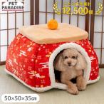犬 猫 千鳥柄 こたつ ハウス 室内用 (50cm) | 和柄 コード穴付き おもちゃ付き コタツ ボア かわいい ふわふわ
