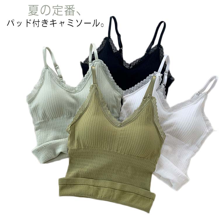 キャミソール カップ付き パッド取り外し可能 レース レディース ブラトップ 肩紐調節可能 インナー 下着 肌着 Vネック ノースリーブ レースキャミソール ナイトウエア ハウスウエア 部屋着 パッド付き 爽やか 伸縮性 薄手 柔らかい 夏物 夏新作