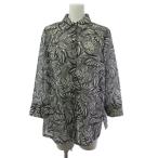 ハナエモリ HANAE MORI シャツ ブラウス 長袖 リーフ柄 モノトーン 白 黒 ホワイト ブラック 38 レディース