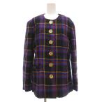 ハナエモリ HANAE MORI 美品 ジャケット ウール 38 紫 黒 ブラック チェック柄 ノーカラー /YJ ■GY61 レディース