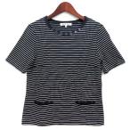 ハナエモリ HANAE MORI ケーブルステッチ ボーダー Tシャツ カットソー 半袖 ネイビー 紺 38 レディース
