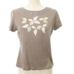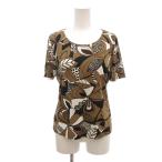 ハナエモリ HANAE MORI カットソー Tシャツ M 茶 ブラウン リーフ柄 ラウンドネック 半袖 /NL ■GY06 レディース