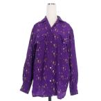 ハナエモリ HANAE MORI 総柄 オープンカラーシルクシャツ ブラウス 長袖 M パープル 紫 C-TK394 レディース